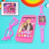 Barbiee Phone, Watch and Glasses Set for Girls, Beautiful Barbie Musical phone ABS Plastic Toy Battery Operated Barbie Glass | Musical Mobile Phone  / Toddler / Toy Phone for Kids / Calling Toy Phone (3 Pcs Set, Battery Not Included)